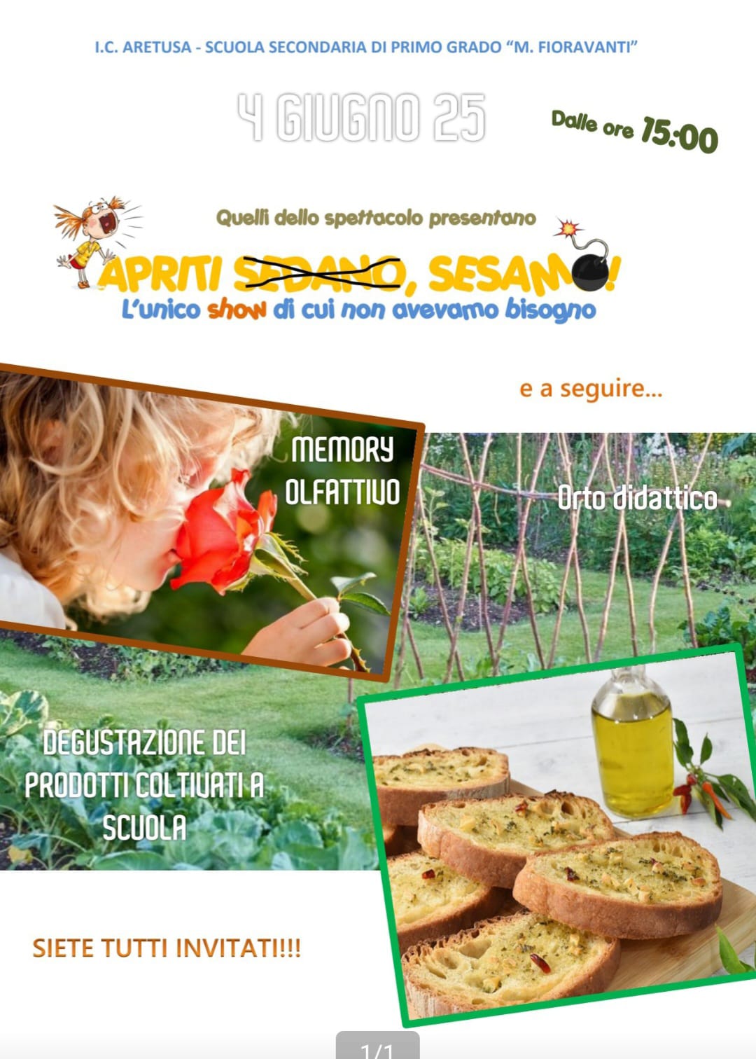 EVENTO FINALE: spettacolo, divertimento e degustazione di prodotti del nostro orto scolastico!!!!! 6 Giugno 2025 ore 15:00 presso la scuola Michele Fioravanti.